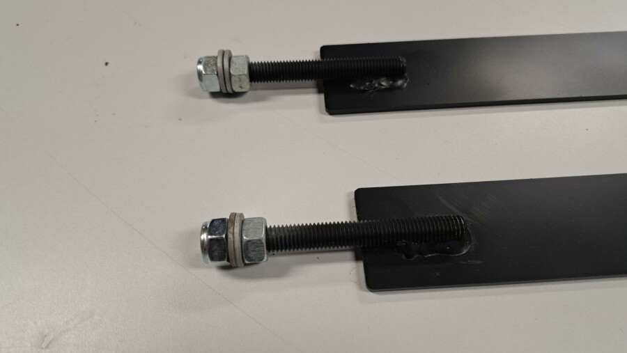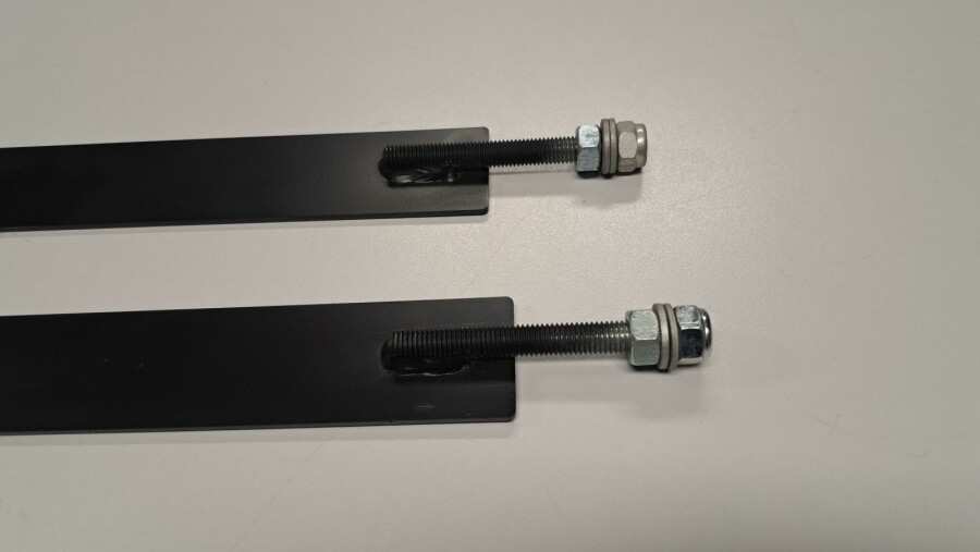 Avec 2 écrous M12 et 2 rondelles de chaque côté.